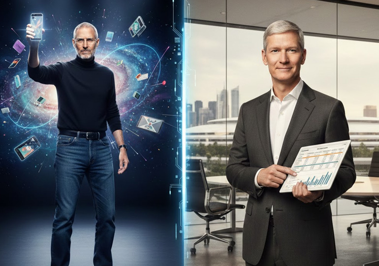 二人とも組織の動かし方が違います。ジョブズは、感情の起伏が激しいですが、未来を作りだす力が強く、ビジョナリーです。